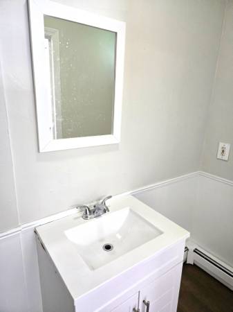 • Bathroom has new vinyl flooring, a stand-up shower, and new vanity/sink combo