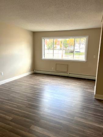 Spacious and sunny family room with spotless flooring and large picture window