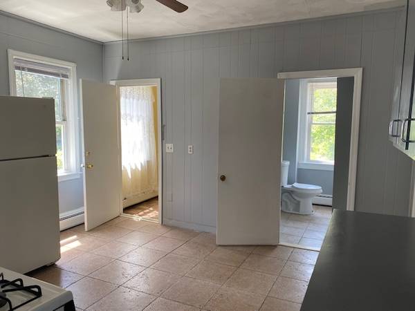 • Eat-in kitchen with ceramic tile, gas cooking and large dining area
