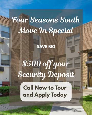 - With utilities like heat and hot water included, and an array of amenities at your doorstep, Four Seasons South Apartments offers comfort, convenience, and affordability—an ideal place to call home.