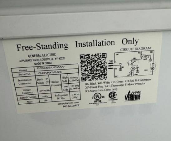 GE® 5.0 Cu. Ft. Manual Defrost Chest Freezer Model #:FCM5SUWW