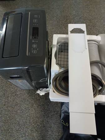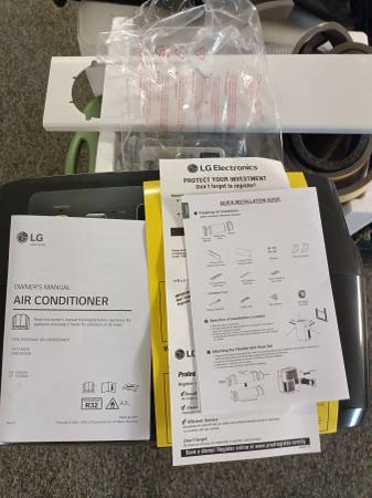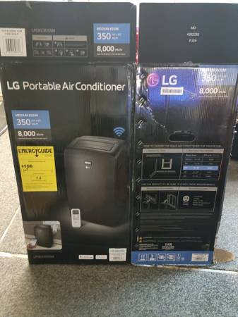 LG portable air conditioner. Bought brand new on 6/23. Never used. Never plugged in. All parts, labels, remote, manuals still in plastic/foam. Had to buy a window mounted unit instead