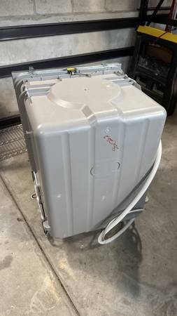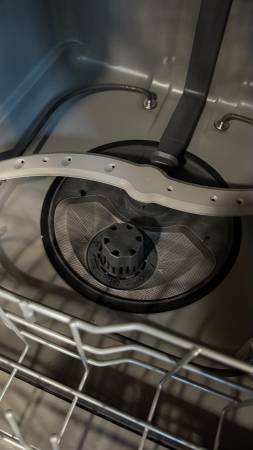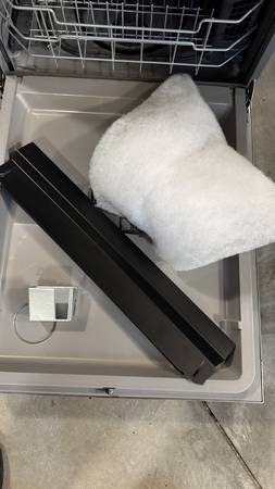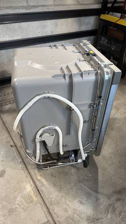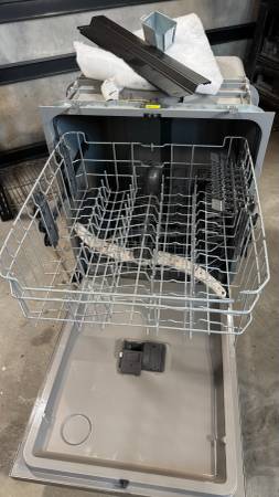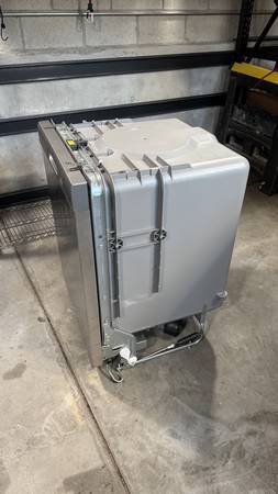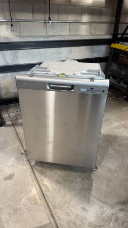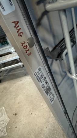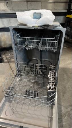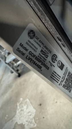 GE 24" built-in stainless steel exterior dishwasher with plastic interior. Purchased new in August 2023. Clean and in full working condition. Front exterior has a couple of marks and a small dent. No longer needed after a kitchen remodel. Includes electrical box, trim panel and sound proofing. Cash only.