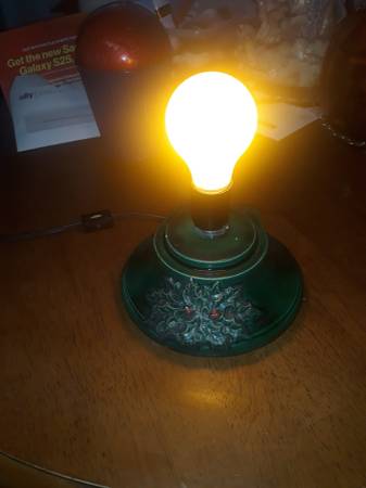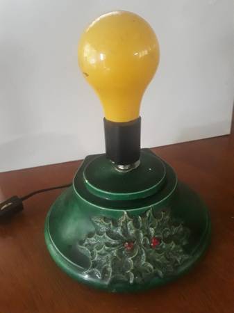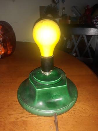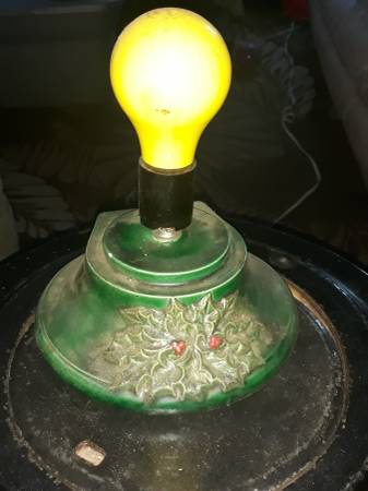 Florence Vintage Kerosene heater stove I don't know much about the item. Nice Decoration Piece also See pics Blk 3 leg pics show the light lit with a lamp Lamp _ - Vintage 70's Green Ceramic Lighted...