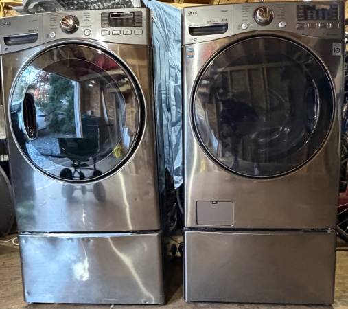 The LG WM3770HVA is a 27-inch, 4.5 cu. ft. front-load washer with features like TurboWash, Steam Technology, and Allergiene Cycle. It has 12 wash cycles, a 1300 RPM max spin speed, and is stackable and ENERGY STAR rated. Key specifications include a 39" height, 27" width, 30.25" depth, and a 120V electrical requirement.