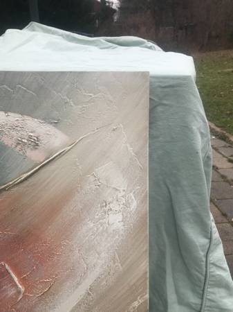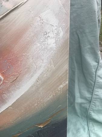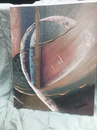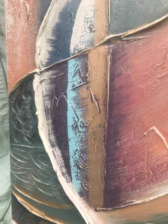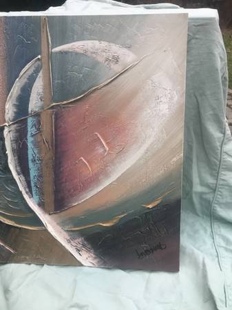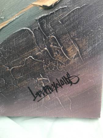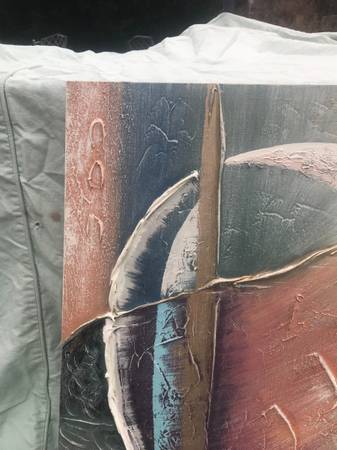 I don't really know much about art, I just buy things I like with a certain look. I think this is acrylic on canvas and it is signed Lee Reynolds. Piece is in excellent condition. There may be a slight scuff or to that I missed but overall like new.