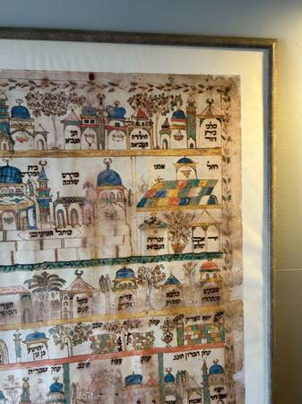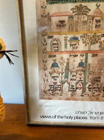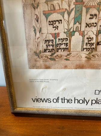 Vintage Isreal Museum Collection poster as shown. Poster is in very good condition. There are some discolored spots on the poster, I think it is the adhesive they used to secure it to the backing. The frame has a few scuffs and scratches but overall piece is in excellent condition.
