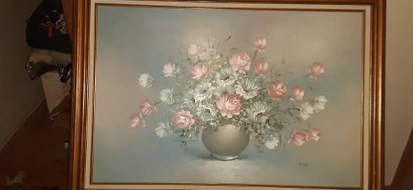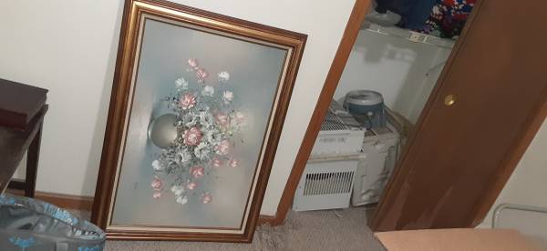 Large framed floral still life original oil on canvas, signed "Emily" $40 OBO (similar selling $65-100)