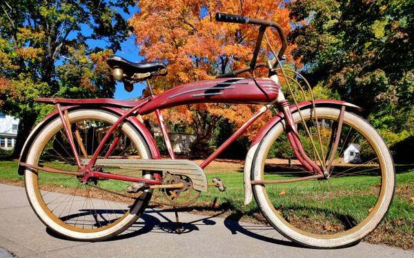 Im looking to buy antique American made balloon tire (Tire width 2.125) and wooden rimed bicycles AND parts in any condition made BEFORE 1950 by bicycle companies such as;