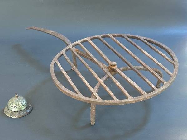 C1800-1850 Hand forged primitive iron broiler for an open cooking fireplace. Very large size measuring 27" overall with 15"D cooking surface.