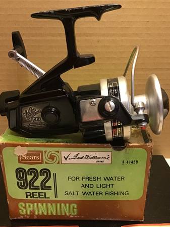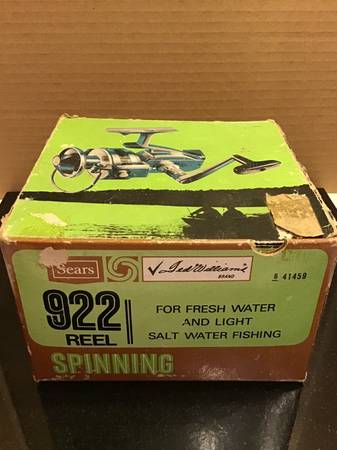 Nice vintage collectible / usable sears Ted Williams 922 spinning reel .. looks and works great…with original box… $45.00 firm no less thanks for looking….