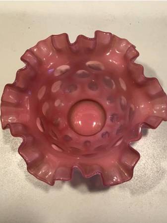 This is a beautiful vintage pre logo fenton cranberry opalescent coin dot #1427 cr rose bowl in mint condition a great collectible piece….$45.00
