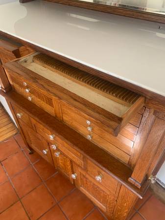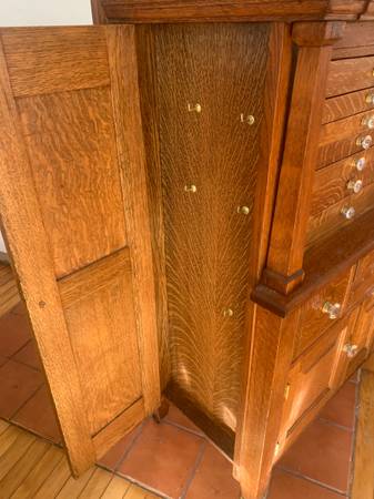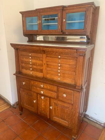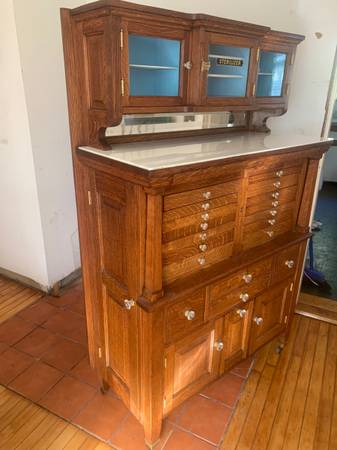 Fantastic restored antique, quarter sawn oak dental cabinet made by the American Cabinet Company in 1913. 18"D x 41"W x 63"H $2500 or BO. Delivery or meet in the middle possible.