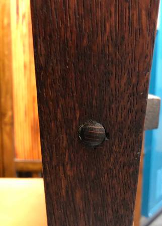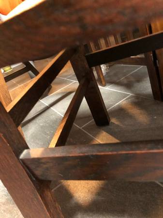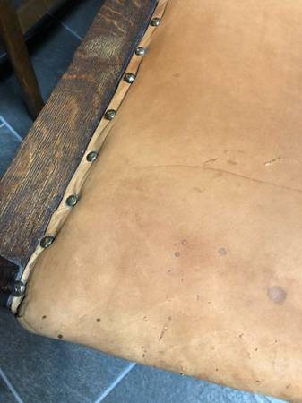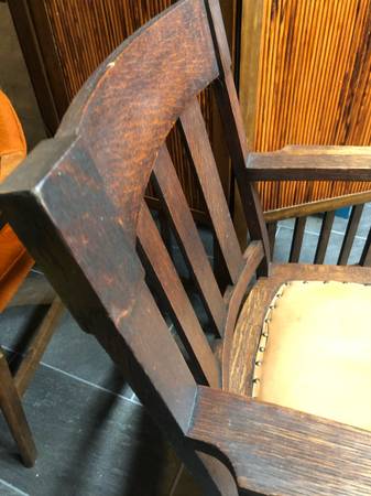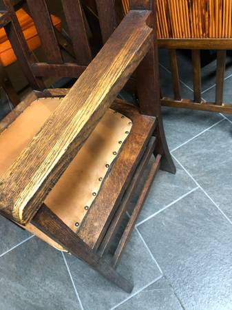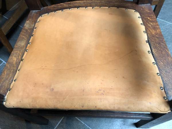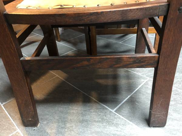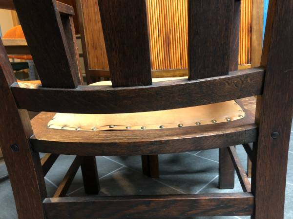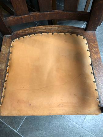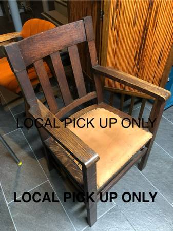 Original c.1910 craftsman, mission, arts and crafts oak armchair. Leather seat. In excellent condition.