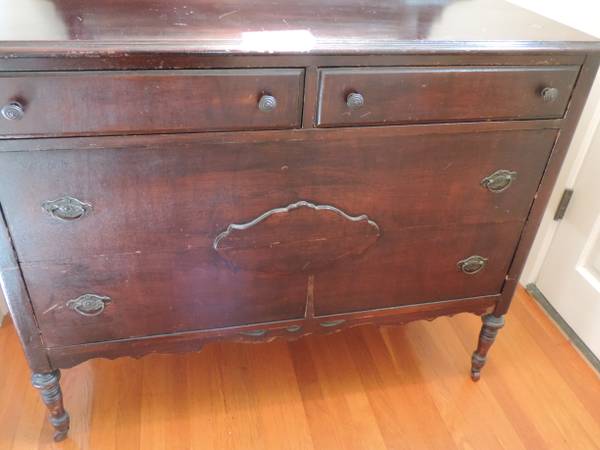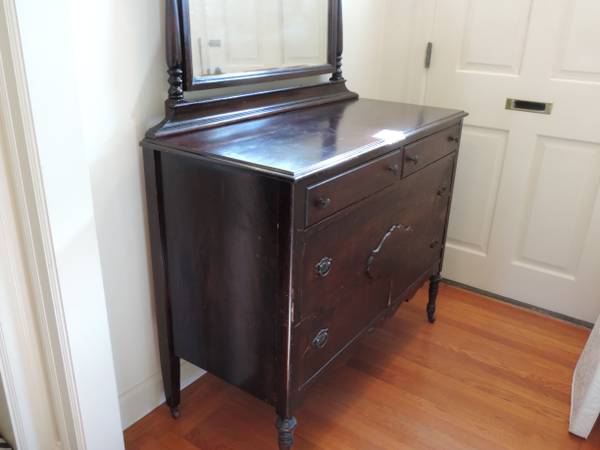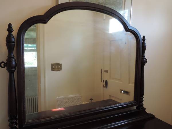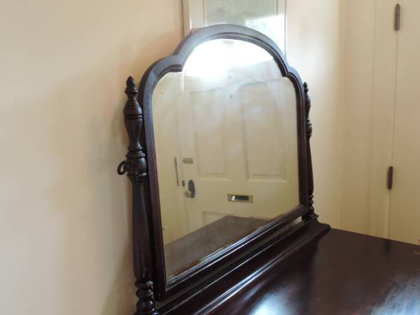 Walnut / Stained over to look like mahogany Unagusta Manufacturing Co. Adjustable mirror tilts