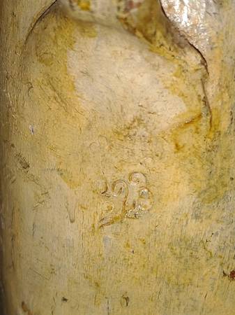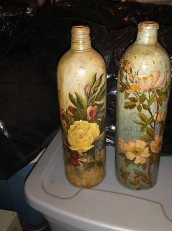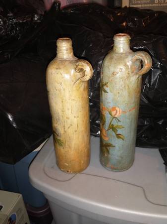 Handpainted stoneware bottle. Appears to be of German origin from 1800's. Bottles painted by Florence Bodwell. 11" high, 3" diameter