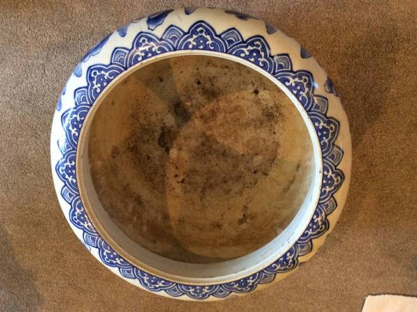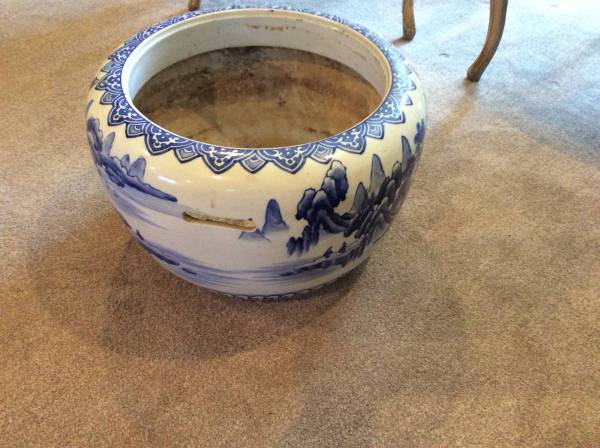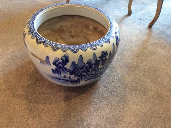 Vintage planter, this was inherited so I do not know the history, does have one ink stamp on the inside of pot. In very good condition, measurements are 12 inches high, 13 and 3/4 opening and 13...