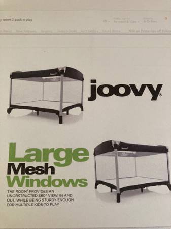 Joovy Room2 large portable playpen for baby or toddler. Folds up when not needed.