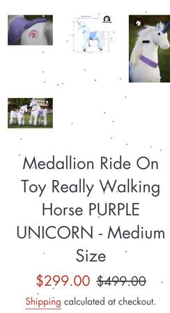 Medallion Ride On Toy Really Walking Horse PURPLE UNICORN - Medium Size