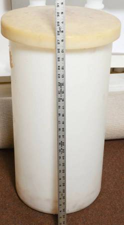 Plastic 12.5 gallons and approximately 28" tall. I have at least three tanks this size.