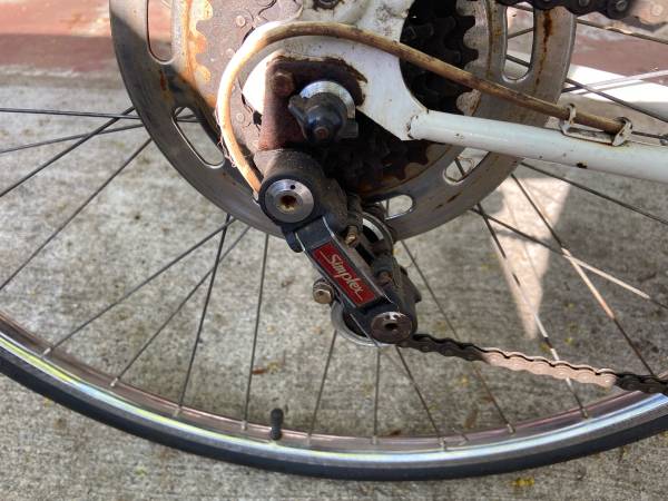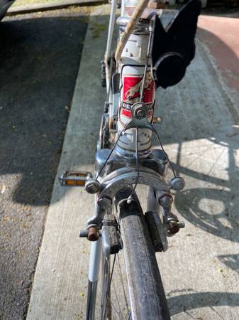 INCLUDE A PHONE NUMBER FOR RESPONSE. Old Peugeot 10 speed. Looks to be early 70s. Looks to have all the correct components on it. Wheels spin true. 22 1/2 inch frame. Rear tire is new, front is ancient but still holds air. Has a Rampar seat and a Sachs Huret odometer on front wheel. Include a phone for a response. $150