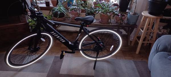 Pedal assist as well as cruise. 7 speed. Blinkers. Reflective white wall tires. Approximately 45 miles per charge.
