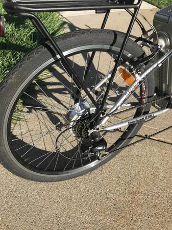 This X-Treme electric bike is powered by a 300 watt brushless electric motor that can move riders to a top speed of 20 mph, with a 10-mile range (unlimited when pedaling, of course).