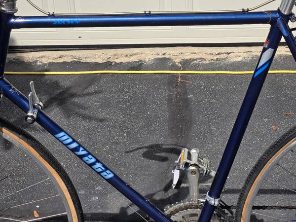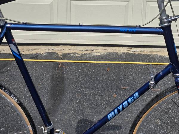 This touring bike has triple-butted splined Chromoly frame tubing that was manufactured with the same technique as the piping used for guns. It was bored out lengthwise using a round steel rod. This produced a very unusual quality tubing for use in bicycles. This bike is slightly lighter in weight than Trek 520/720 touring bikes, but of similar quality. The Miyata 610 was considered one of the finest, lightest off-the-shelf touring bikes of its time, with splined, triple-butted chromoly tubing. The 610 is flexible yet stiff to provide a competent platform for loaded touring, but it’s just as adept at comfortably wandering the backroads on a Sunday afternoon.