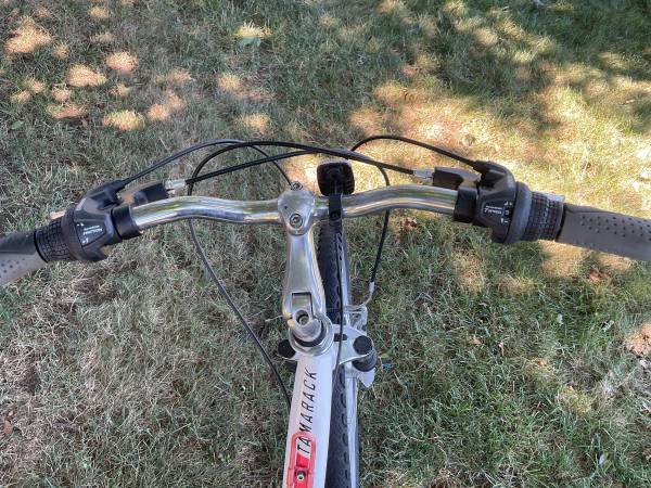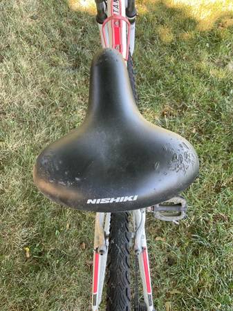 Lightly used. In good condition. Stored in garage or shed only. No rust. Girls/women’s bike. Nishiki Tamarack 17” frame - Size Medium. Best Fits 5’7” - 5’11” tall person. White frame. 14 Speeds....