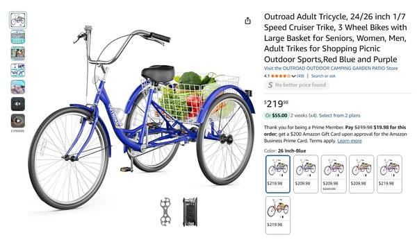 Adult Tricycle, 26 inch Cruiser Trike, 3 Wheel Bikes with Large Basket for Seniors, Women, Men, Adult Trikes for Shopping Picnic Outdoor Sports, Blue This was an Amazon purchased, assembled but...