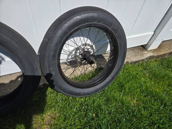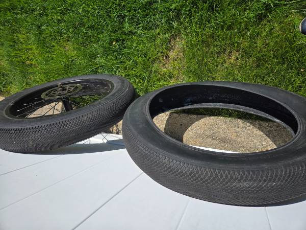 E Bike front rim and two tires Rim is true and tires have good tread Call 401-692-085six