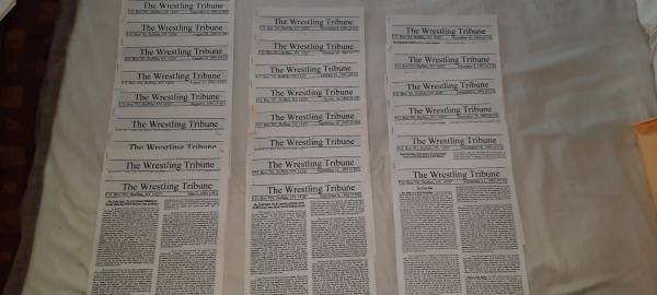 This is a full year set (50 issues) of two different titles of pro wrestling newsletters (Pro Wrestling Illustrated WEEKLY and The Wrestling Tribune), dated January 2, 1995 through December 25, 1995. This is how wrestling news got reported in the “B.I. days” (Before Internet).