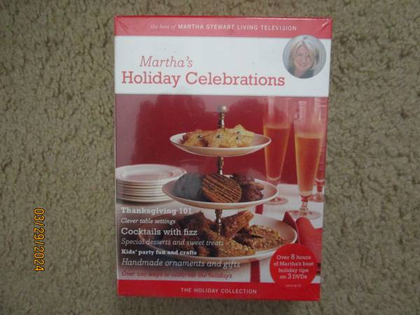 Great gift! All for $25 Martha's Holiday Celebration 3 DVDs (brand new, unopened!) "Joy of Cooking" (1088 pages) Like new! Snoop Dogg Cookbook (191 pages) New! "From Crook to Cook" Opening words by...