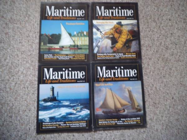 Wooden Boat magazine issues 106 (jun 1992), 155 (aug 2000), 189, 190, 191, 192, 193 (2006), 194, 195, 196, 197, 198, 199 (2007),issue 200, 201, 202, 203, 204 from 2008. Also issues of Maritime Life...