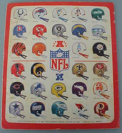 Offering the 1981 TOPPS FOOTBALL STICKER ALBUM shown which softbound , complete with 32 pages, as photos show some stickers are already placed.. Neat bit of football memorabilia nonetheless...photos show actual item..$5.00 please TEXT (617) 302-668two to arrange pickup in warwick