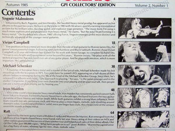1985 GUITAR PLAYER MAGAZINE "HEAVY METAL GREATS" MICHAEL SCHENKER, YNGWIE MALMSTEEN RATT, IRON MAIDEN etc, very good condition...pickup in warwic
