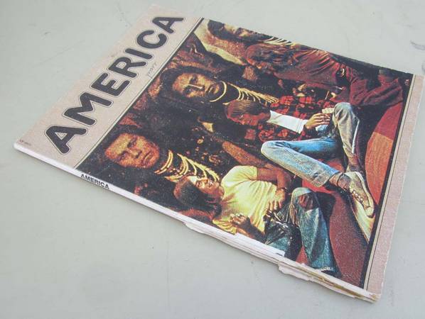 offering for sale one book titled "America".. Songbook from the self-titled album by the band America. 64-page softcover book. Includes: "A Horse With No Name", "I Need You" , "Sandman" Etc.Also has a number of photos..