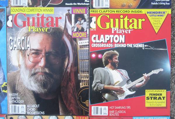 Clapton Celebration Cover & Free Record, Pro's Reply: Jerry Holmes, Classical Masterpieces, Stuart Hamm: Two Hands On Bass, Lydia Mendoza- The Lark Of The Border, High-ech Guitar: Sampling Applications, Big Fun On The Bayou, Masters Series: All About Chord Progressions, Fred Newell of "Nashville Now", Copyright For Guitarists. Rare Bird...1951 Broadcasters, Nocasters and Telecasters...EXCELLENT complete condition. Unreleased Derek & The Dominos playing Hendrix "Little Wing" soundpage intact..