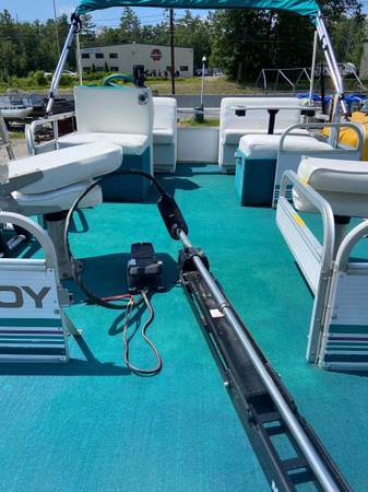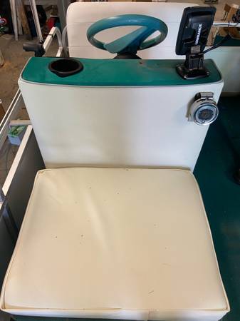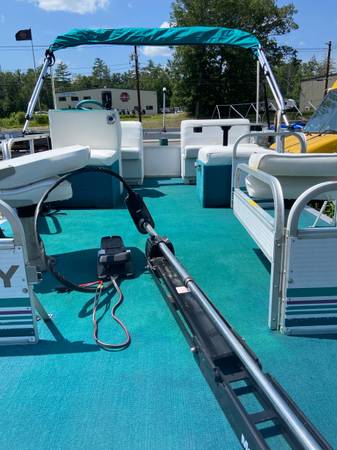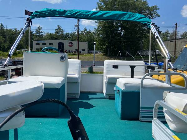 1). - 14’ pontoon that is 7’ wide (greater stability), new carpet, solid floor, new interior, new top motor options: $9700 with 25 Johnson- new carpeting , new lights new top, new decal walls -PICS COMING SOON- just finishing up in restoration shop OR NEW ELECTRIC MOTOR WITH POWER TILT and controls with key ($17,500) will deliver locally or :