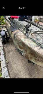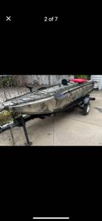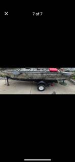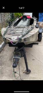 Micro Skiff double hull kayak/canoe. Camouflage, 4" draft with trailer. (can support a 9hp engine and gear)