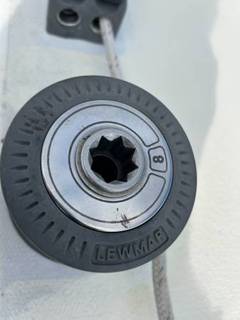 Lewmar No. 8 winches, which are high-quality marine-grade winches for sailboats. Lewmar's Ocean Series No. 8 Standard Winch is a well-regarded, durable, and reliable product.