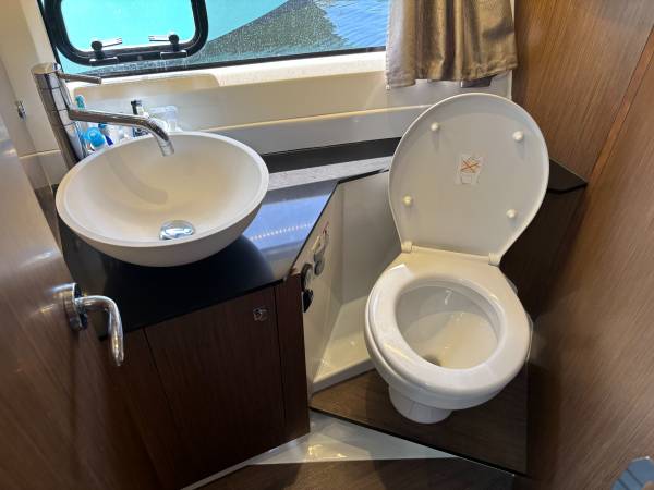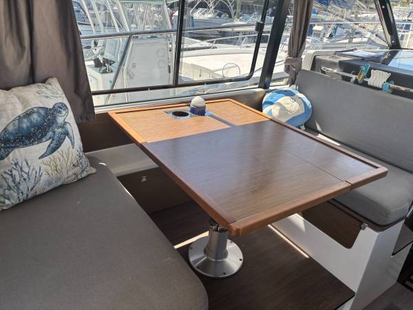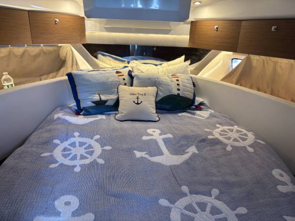 Key Options: Premium trim level, Panda diesel generator, upgraded Garmin GPS, addition refrigerator, underwater lights, mattress for third cabin, aft cockpit awning, custom canvas for bow cushions, 27" TV in master bedroom