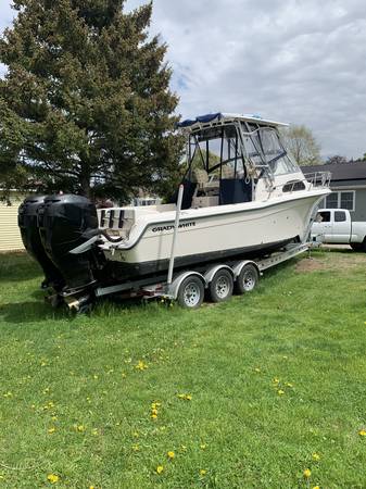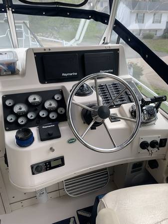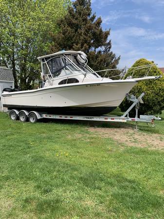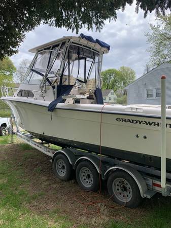 This is a very nice Grady White 28' Sailfish. Always professionally maintained. Only 650 hrs. on great running twin 275 Mercury four stroke outboards. There are two Raymarine Axiom multi function display units at the helm. The sale of this boat also includes a very nice galvanized tri-axle Load Rite Elite trailer. Also included is a custom fit winter storage cover.