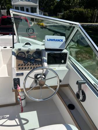 2003 150 Yamaha w/495 hours. Everything works/ needs nothing. Bimini top with complete enclosure never used. Lowerance chart plotter/depth/fish finder. Ship to shore radio.factory aluminum 60 gal....