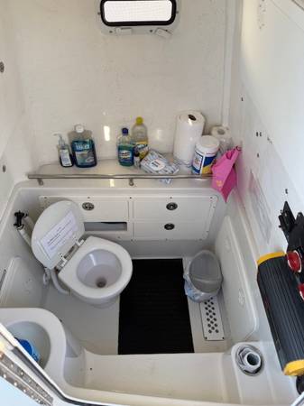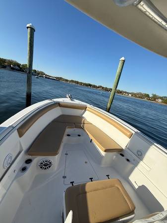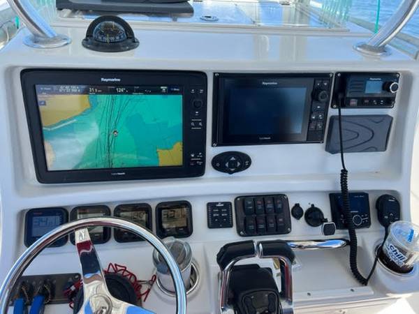 Raymarine Radar, Raymarine GPS/Navigation/Fish Finders Screens, VHF Radio, Windlass, Spotlight, Vacuflush Head with Sink, Battery Charger w/ Shore Power, 300 gallon fuel tank, 30 gallon bait well, fish box, outriggers, Yeti cooler with seat cushion, stainless steel ladder, salt water wash down, fresh water wash down, all sorts of wash downs!!