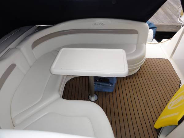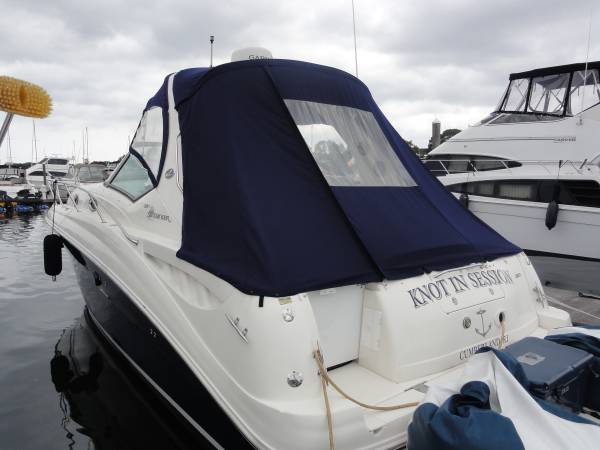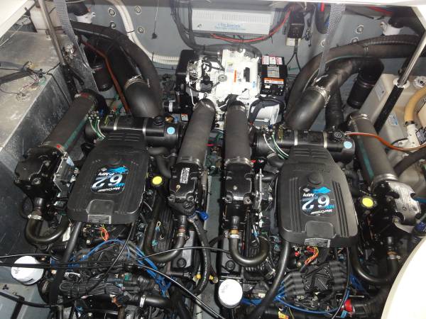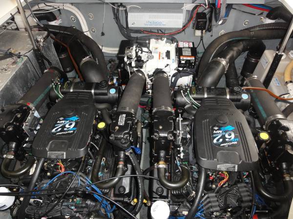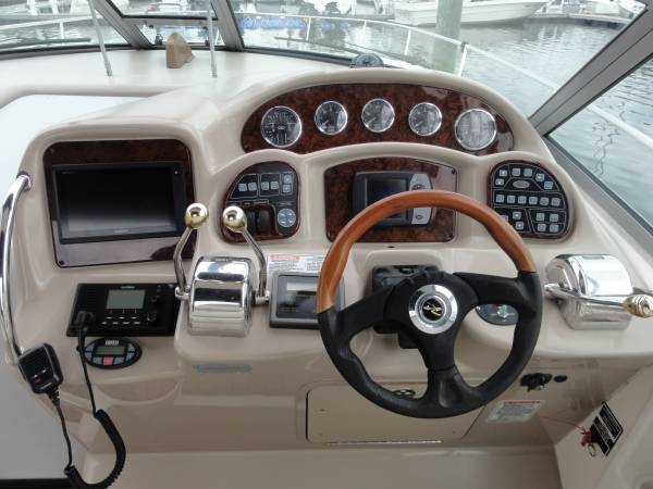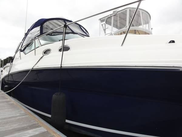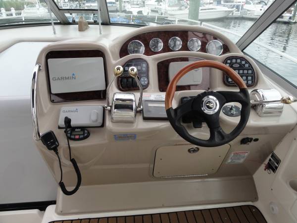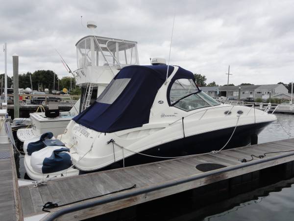 Super clean blue hull Sea Ray 320 with the larger 6.2mpi v-drive motors available. The owner just had all brand-new canvas installed, new JL Audio stereo equipment and new Garmin radar and gps. This blue hull shines and is nearly flawless just like the interior cockpit seats! The vessel has teak cockpit rug, cockpit refridge, generator with under 200 hours, bow cushion, windlass spotlight/heat and so much more! The boat is turnkey and ready to go! Don't miss this one!