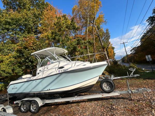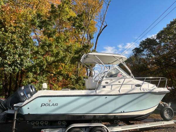 Selling for absolute steal…. I’m reposting this because I had 1 million people asking so I just want to post everything in the ad. This is a 2005 23 foot walk around polar boat. These boats are composite and are made with no wood so they never rot. The bottom was just fully sanded and painted in is in brand new condition as well . The engine is a Yamaha 225 four stroke in mint condition. It only has 350 hours on the entire engine and runs like brand new. Has hydraulic steering a hummingbird fishfinder chart plotter VHF radio storage for fish in the deck, has a down below with a sink refrigerator and porta potty and plenty of room to sleep people. Trailer is a 2015 venture that is in brand new condition with no rust on it with disc brakes 8000 pound trailer that I just paid $4000 for alone. It has a hard top with floodlights and rod holders. Similar people are selling these boats for a lot of money. This is an absolute steal for the hours ane the engine hours and the trailer. If it doesn’t sell now I’ll be posting it for around 30,000 in the spring or more. I have title in hand and come bring cash and make an offer. Thanks you for looking
