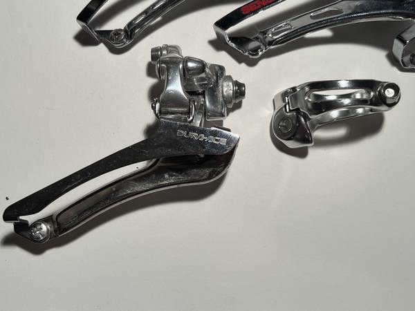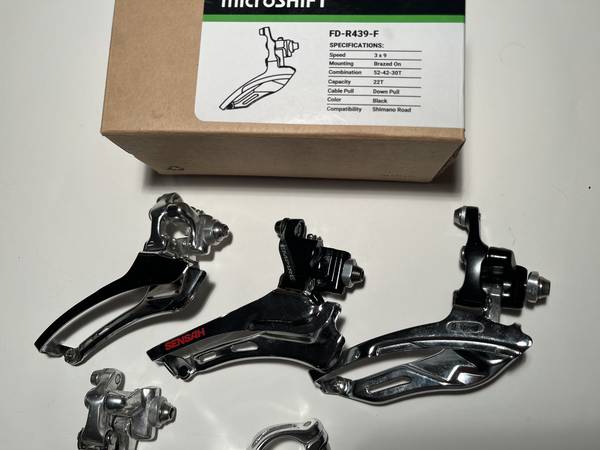 Various FRONT derailleurs NEW- I have a braze on frame clip. Micro Shift - braze on $ 35 Shimano Ultegra 11 speed FD R8000 clamp-on $40 SenHa Empire- similar to 105 $ 35 braze on ( second der)