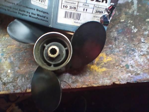 qUICKSILVER bLACK dIAMOND PROPELLER qa 2102r 10 3/8 PITCH 11" FITS mERC/MARINER 9 &15 HP FOUR STROKES AND MERC/MARINER 18-25 HP AND FORCE 25HP 2 STROKE nEW IN BOX
