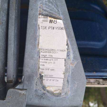 Boat Fluke Anchor #8 Label indicates for boat up to 23 feet